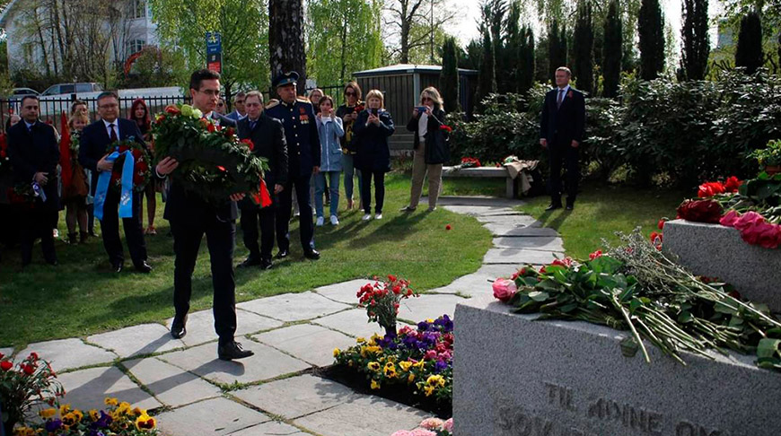 В Осло посол Беларуси в Швеции и Норвегии (по совместительству) Дмитрий Мирончик возложил венки и цветы к монументу погибшим советским воинам, расположенному на кладбище "Вестре Гравлюнд".