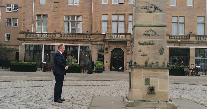 Посол Беларуси в Великобритании Максим Ермолович совместно с представителями белорусской диаспоры в Шотландии возложил цветы к Мемориалу шотландского торгового флота. Памятник воздвигнут в честь мореходов, обеспечивавших доставку стратегических грузов в годы Первой и Второй мировых войн.