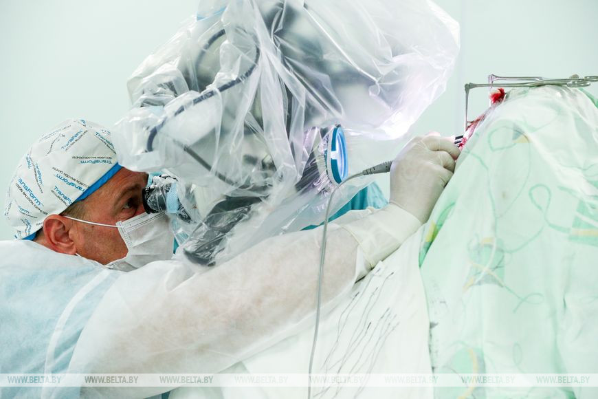 14 июля, Минск /Корр. БЕЛТА/. Белорусские медики провели сверхсложную операцию у пациента с опухолью внутри спинного мозга, сообщил журналистам ведущий научный сотрудник нейрохирургического отдела Республиканского научно-практического центра неврологии и нейрохирургии, кандидат медицинских наук Александр Головко, передает корреспондент БЕЛТА.