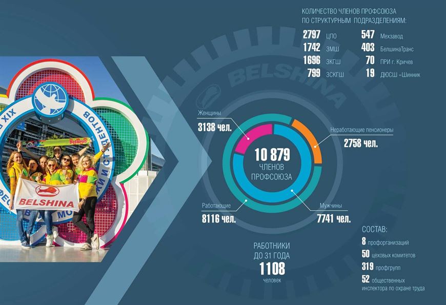 Вся история профкома предприятия насыщена разноплановыми событиями, как и в целом история "Белшины". Профсоюзная организация сегодня – это сплоченный коллектив единомышленников, который защищает интересы работников. И об этом наш сегодняшний рассказ.