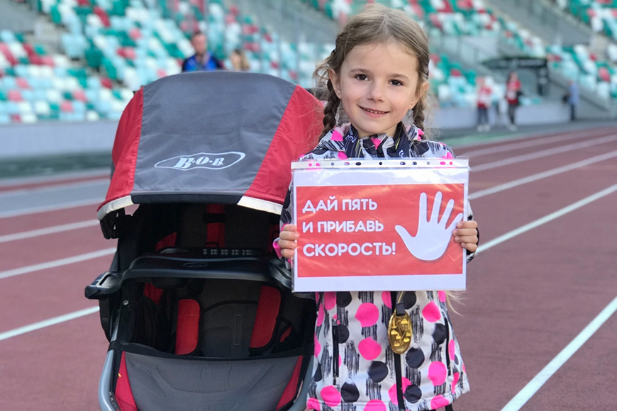 Так и вышло, что бегать она не прекратила. Самый экстремальный забег, по ее мнению, был на 8-м месяце беременности. "Он закончился хорошо, - улыбается женщина. - Потом родилась Устинья и встал вопрос как бегать дальше. Изучив информацию, нашла и купила специальную беговую коляску и со своих 9-ти месяцев дочка уже участвовала в забегах со мной, сидя в беговой коляске. Скажу честно, таких мам не много и я сталкивалась как с поддержкой, так и осуждением. Но к моему счастью, первого было больше".Сама Устинья полностью разделяет это увлечение мамы, а с 2021 года, когда ей было 3,5 года, самостоятельно бегает на детских дистанциях. "Я знаю, что мне не было и года, как я начала участвовать с мамой в забегах. Мы вдвоем участвовали в очень большом количестве забегов, но сейчас я уже бегаю самостоятельно. Мама меня поддерживает. Я всегда видела, как много людей увлекается бегом, сколько их бежит рядом с нами. Каждый забег - это как праздник, много людей, все радостные, друг друга поддерживают. И даже я поддерживала бегунов с плакатом "Дай пять и прибавь скорость", - поделилась воспоминаниями девочка. Мама всегда бежит рядом с дочкой, ведь поддержка - неотъемлемая часть их семьи.