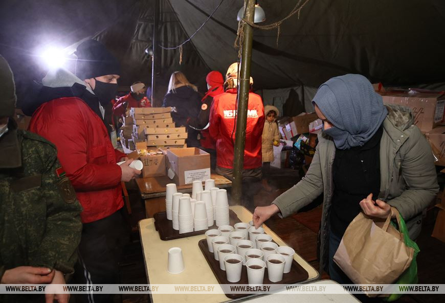 В пункте размещения в ТЛЦ беженцев обеспечивают питанием, питьевой водой. Обеспечено круглосуточное дежурство медиков. Сегодня вновь начала работать полевая баня.-0-