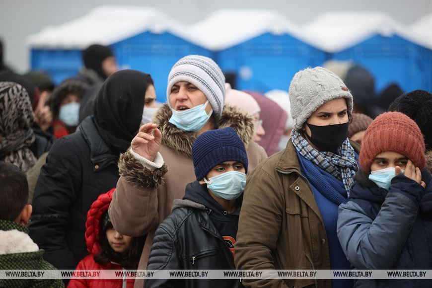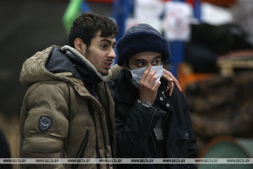 Сегодня для беженцев на границе идет 34-й день. Находятся люди в пункте временного размещения в транспортно-логистическом центре "Брузги". В основном это выходцы из Ирака, хотя среди них есть и граждане других стран, в том числе африканских.