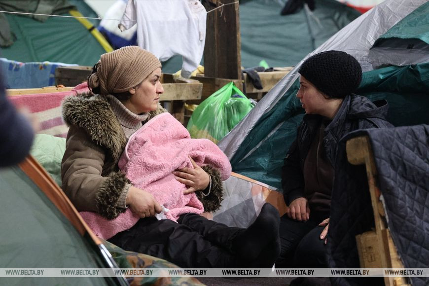 13 декабря, Гродно /Корр. БЕЛТА/. Наша главная цель - попасть в Германию. Об этом сказал корреспонденту БЕЛТА один из беженцев в пункте временного размещения в транспортно-логистическом центре неподалеку от белорусско-польской границы.