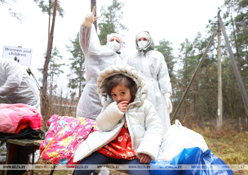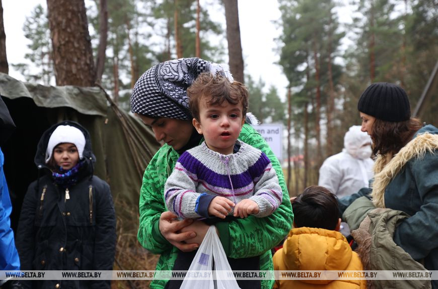 "Спасибо, есть еда, есть вода. Мы спим не на улице, а в теплом помещении. Беларусь - хорошо", - рассказывает одна из беженок. Она вместе с мужем и двумя детьми 5 и 7 лет надеется попасть в Германию.