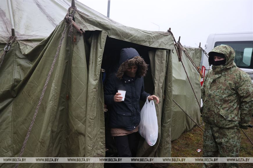 Ежедневно беженцам доставляют горячее питание и продуктовые наборы. В грузах гуманитарной помощи также теплые вещи, игрушки для детей. Круглосуточно дежурят рядом с пунктом временного размещения и медики. Поток пациентов к ним стабильный. Люди жалуются на простуды и другие заболевания, вызванные прежде всего холодными ночевками под открытым небом у линии польской границы.-0-
