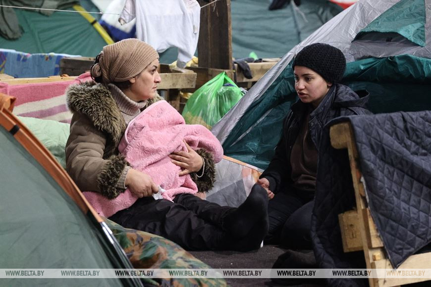 Женщина также благодарит белорусскую сторону за внимание к проблемам беженцев. "Живу в ТЛЦ почти месяц. Нам помогают со всеми бытовыми проблемами. Нас вкусно кормят, выдают продуктовые наборы, организовали баню. Мы и не думали, что к нам могут отнестись так хорошо", - сказала она.-0-