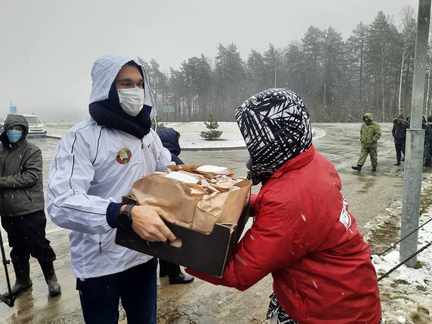 Для людей в транспортно-логистическом центре у пункта пропуска "Брузги" собрали более 100 продуктовых наборов. "Это наш маленький вклад в поддержку попавших в трудную ситуацию людей. Ведь среди них много наших сверстников, хочется им придать уверенности в скором разрешении проблемы", - поделился четверокурсник химического факультета Антон Зверев.