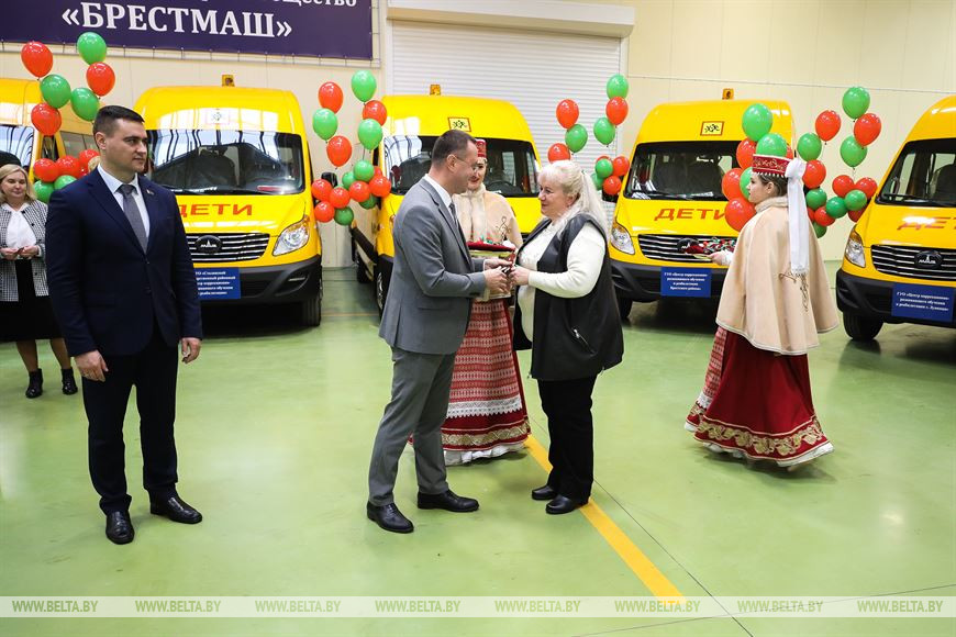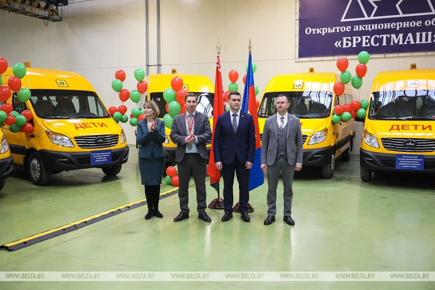 В частности, в ОАО "Брестмаш" по этой программе в этом году изготовят 87 микроавтобусов. Первую партию сегодня в торжественной обстановке передали учреждениям образования Брестской области.