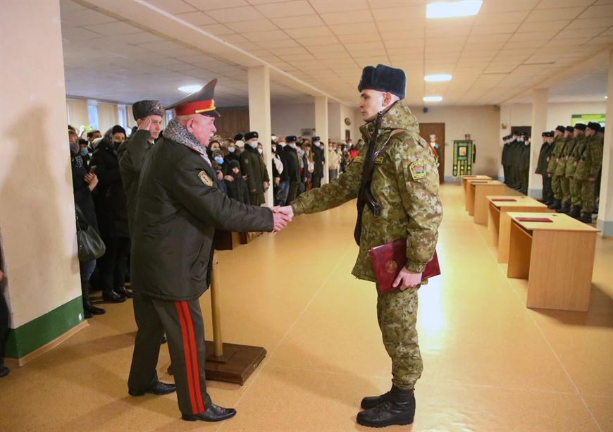 "Сегодня во всех воинских частях органов погранслужбы более 1,4 тыс. новобранцев присягнули на верность белорусскому народу. В осеннем призыве - 2021 около 70% парней уже имеют среднее специальное или среднее техническое образование. 30 молодых людей призвались в армию после окончания высших учебных заведений. Каждый пятый призывник родом из Гомельской области. Отбор ребят проходил таким образом, чтобы полученные ими профессии можно было применить в пограничной службе. У половины новобранцев за плечами успешное обучение по управлению транспортом разных категорий. 35 человек - профессиональные повара", - рассказали в ГПК.