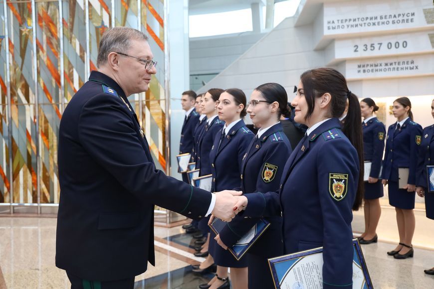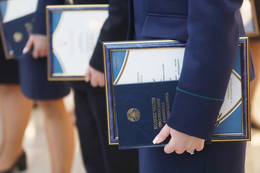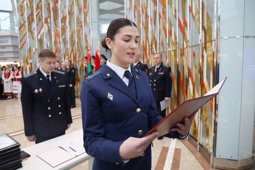 Присягу у прокурорских работников принял генеральный прокурор Андрей Швед. Он отметил, что это важный шаг, имеющий глубокий смысл. "Человек дает присягу быть верным долгу, служить людям, нашему Президенту, любимой Беларуси и никогда не предавать ни своих родных, ни близких, ни свою страну и самое главное - не предавать самого себя. Сегодня через ритуал присяги мы подтверждаем преемственность поколений. К нам приходят молодые работники, и с одной стороны мы в них уверены, а с другой - они понимают, что с этого дня им оказано большое доверие", - сказал он.