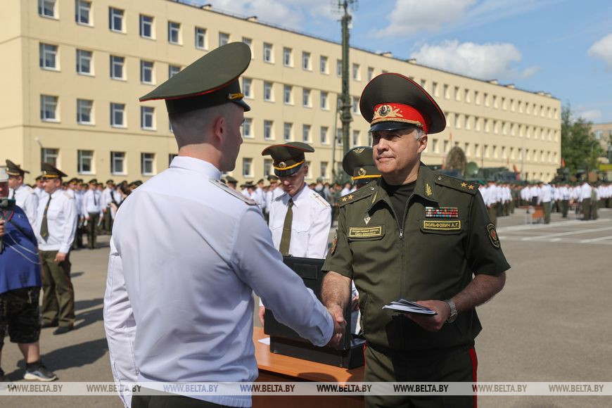 В этом году военный вуз окончили около 420 человек. Шесть выпускников удостоены золотой медали, еще 19 человек получили дипломы с отличием. Дипломы выпускникам вручили министр обороны Виктор Хренин и государственный секретарь Совета безопасности Александр Вольфович.
