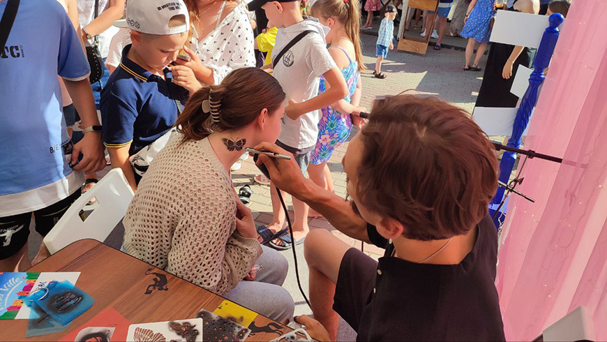 Фотозона с сухим бассейном практически всегда была занята малышами, как и детская творческая мастерская. Ребята активно участвовали в конкурсе рисунков "Это сладкое слово "Витьба" и лепили из пластилина героев, изображенных на упаковке продукции фабрики. Магнитом притягивал ребятишек своеобразный строительный комплекс - из больших деталей конструктора мальчики и девочки возводили башни и крепости, а аниматоры помогали им отыскать нужный "кирпичик". На аквагрим, аэротату и глиттер-бар (нанесение блестками узоров на лицо) выстраивались очереди, ведь юным жителям и гостям фестивального Витебска хотелось блистать во всех смыслах.