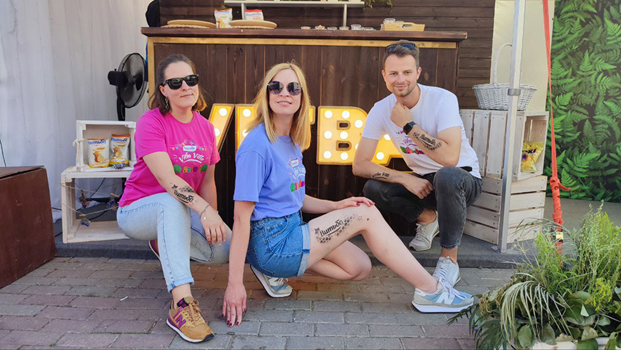 Неотъемлемые атрибуты мини-городка - летнее кафе, павильон с фирменной продукцией и шатер с дегустацией. Здесь можно было попробовать печенье и подушечки с новыми вкусами, продегустировать уже знакомые сладости, а после купить понравившиеся лакомства в торговом павильоне. В летнем кафе на протяжении всего фестиваля проходила акция - упаковку снеков "Кроки" получали те, кто приобретал прохладительные напитки.