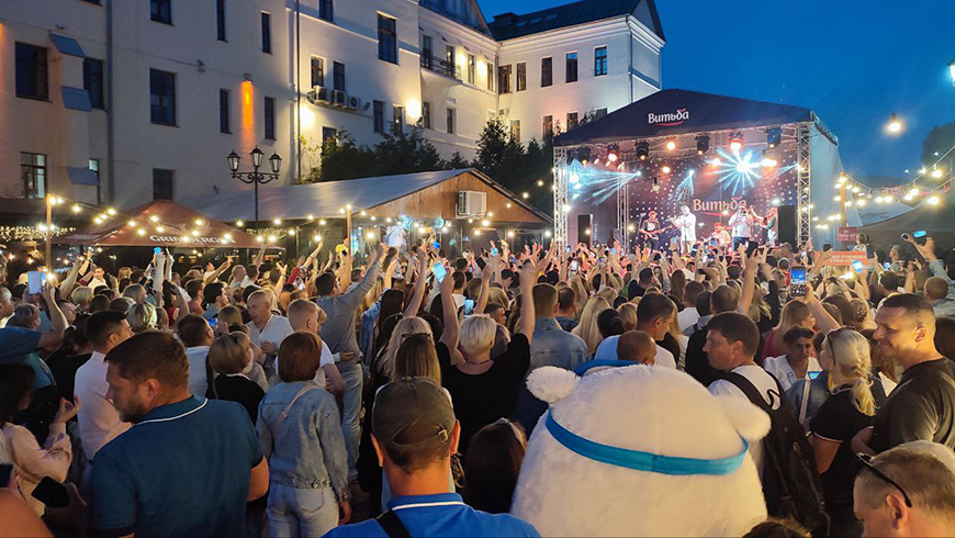 Каждый день с 5 вечера, а по выходным с полудня, и почти до ночи для гостей Vitba Ville на оборудованной сцене проводились конкурсы, развлекательные программы, выступали кавер-группы. На площадке перед сценой устраивались мастер-классы по зумбе и бачате, проходило азотное шоу с раздачей мороженого и даже выступление фокусника.