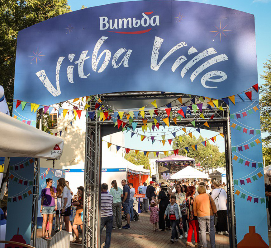 Как рассказали представители предприятия, идеи оформления фестивальной площадки совместно с подрядчиками разработали сотрудники отдела маркетинга кондитерской фабрики. Неудивительно, что весь городок Vitba Ville получился настолько ярким и привлекательным - вафельные батончики и другая продукция "Витьбы" также издалека заметны на полках магазинов.