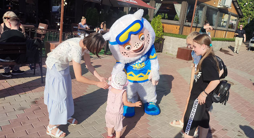 Ростовая кукла Snow Max, которого дети хорошо знают по изображению на упаковке бисквитных пирожных, участвовала с гостям Vitba Ville в играх и танцах. Веселый и дружелюбный йети охотно позировал и для совместных с детьми и взрослыми памятных фотографий.