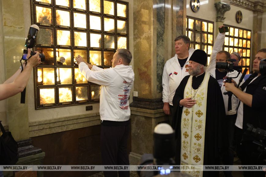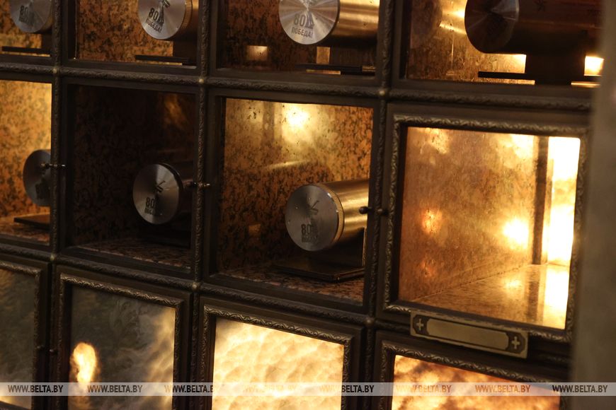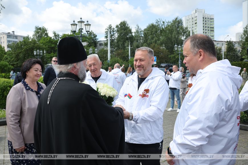 21 июня, Минск /Корр. БЕЛТА/. Участники автопробега, посвященного 80-й годовщине Победы советского народа в Великой Отечественной войне, заложили в Минске 11 капсул с землей из городов-героев в крипту храма-памятника во имя Всех святых и в память о жертвах, спасению Отечества нашего послуживших, передает корреспондент БЕЛТА.
