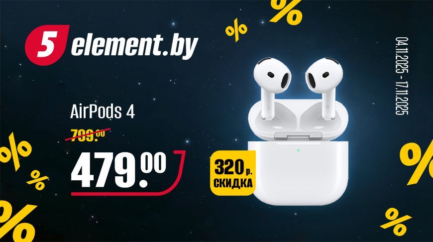 ● Флагманские наушники от Apple AirPods 4 - для создания идеального звука и полного погружения в музыку и подкасты, где бы вы ни находились. Теперь они со скидкой 40% за 479 руб., и Вы сияете от удовольствия.Выгода "Черной пятницы" в "5 элемент" - это невесомые цены и космические скидки на тысячи товаров. Мы делаем современные технологии максимально доступными. Многие из понравившихся товаров можно приобрести в акционный кредит* на 24 месяца, а первые пять месяцев практически без переплат.