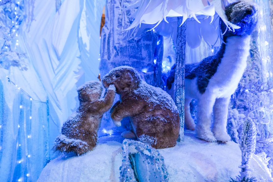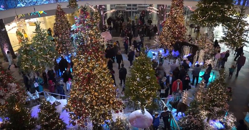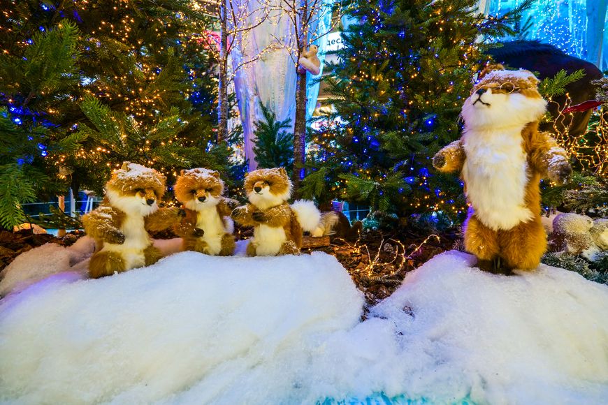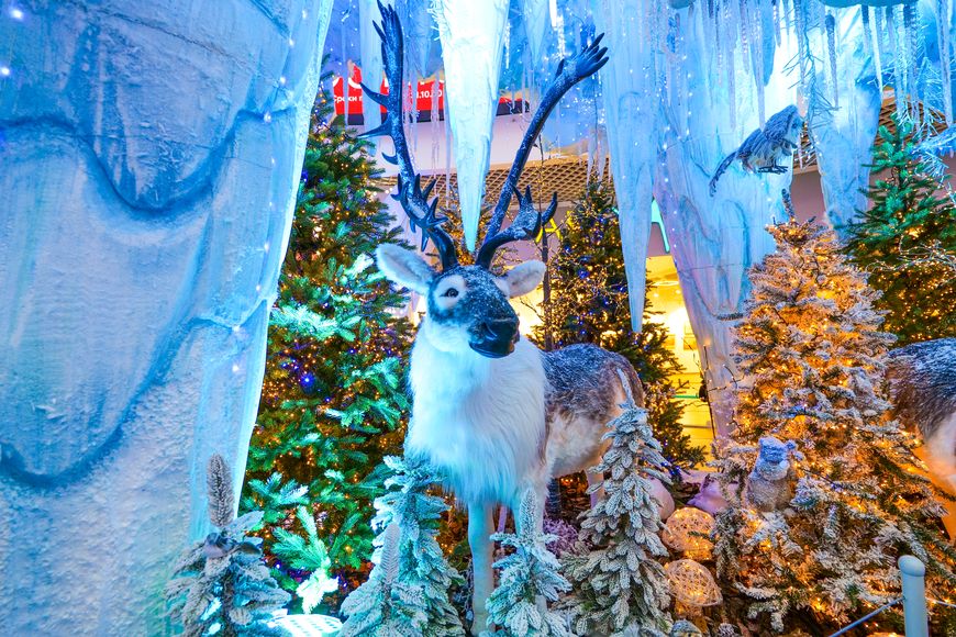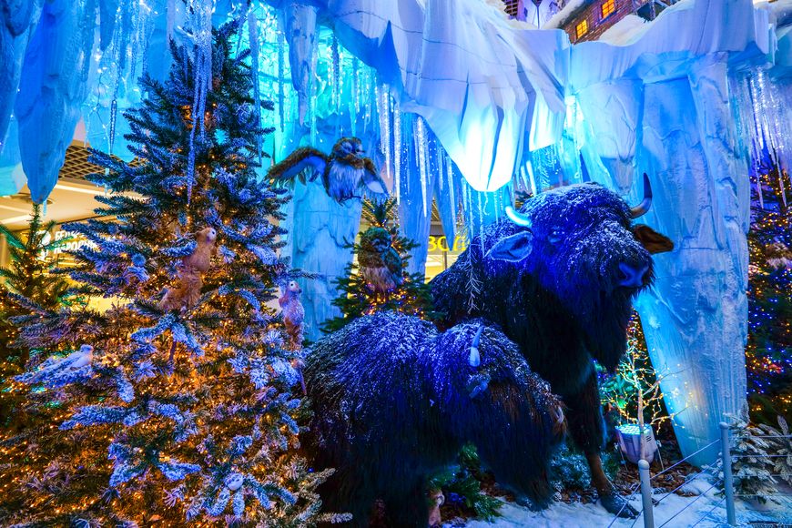 Лесные звери уже ждут вас в чаще. Они готовы сделать шаг навстречу гостям Dana Mall. Они не убегут! Можно сделать множество красивых фото. Так выглядела новогодняя инсталляция в 2022 году - заснеженный сказочный город, который словно сошел со страниц сказки Андерсена. Уютные пекарни и лавки. Сердце инсталляции - покоряющая своей красотой ель.