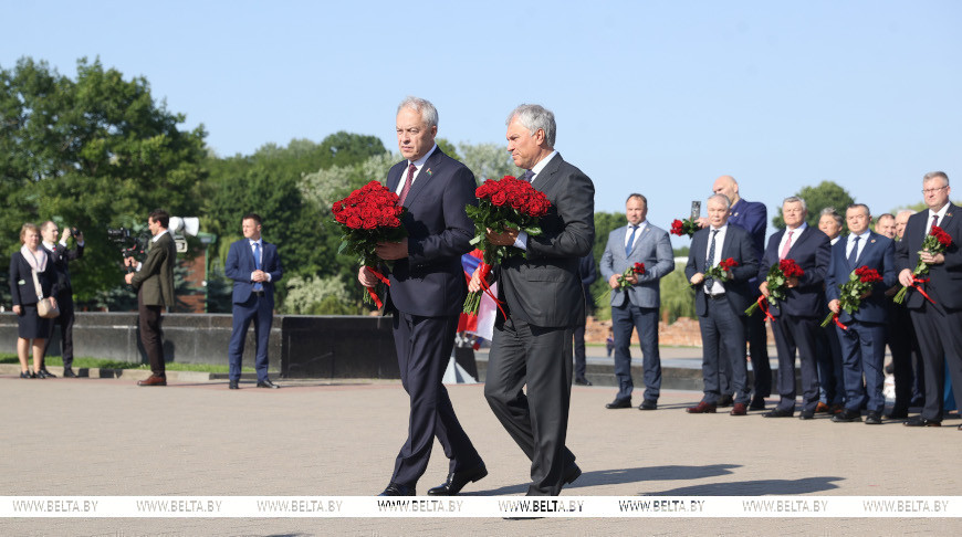 15 июня, Минск /Корр. БЕЛТА/. Депутаты Парламентского собрания Союза Беларуси и России во главе с председателем Палаты представителей Игорем Сергеенко и председателем Государственной думы Вячеславом Володиным посетили мемориальный комплекс "Брестская крепость-герой", где возложили цветы в память о героях - защитниках крепости. Также парламентарии Союзного государства ознакомились с Республиканским центром патриотического воспитания молодежи, расположенным на территории Брестской крепости. 16 июня в городе над Бугом пройдет сессия Парламентского собрания Союза Беларуси и России.-0-