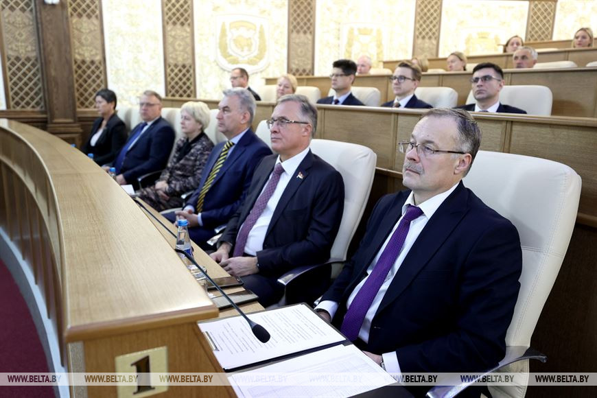 Председатель Верховного Суда проинформировал гостей о том, что судебной системе Беларуси и ВС исполнилось 100 лет. Однако в своем выступлении больший акцент он сделал на последнем 30-летнем периоде развития белорусской судебной системы. Рассказал о ее построении, требованиях к судьям, штатном расписании и гендерном составе судей, особенностях системы правосудия, функциях Верховного Суда, которые заключаются в судебном администрировании и судебном обеспечении. Сообщил также о внесенных в Конституцию изменениях, согласно которым все судьи Верховного и Конституционного судов будут назначаться не Президентом страны, а Всебелорусским народным собранием.