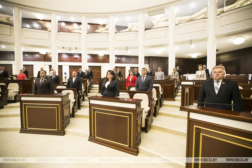 Владимир Андрейченко объявил сессию открытой в соответствии с указом от 24 июля 2020 года №294. "На основании Конституции глава государства принял решение о созыве внеочередной сессии Палаты Представителей и Совета Республики для заслушивания ежегодного Послания Президента белорусскому народу и Национальному собранию и рассмотрения иных вопросов", - отметил спикер.