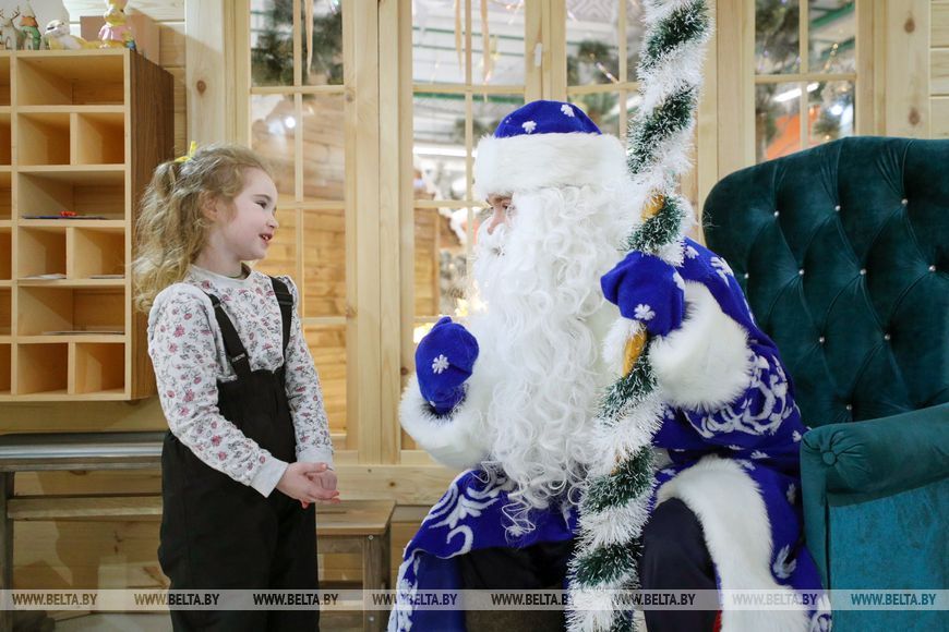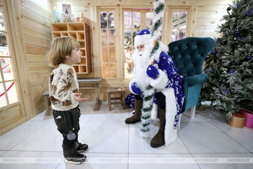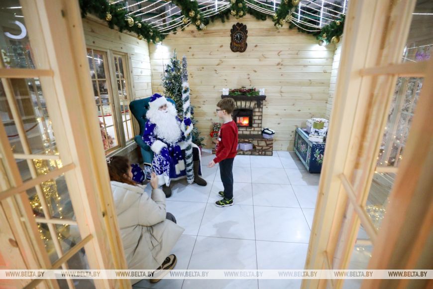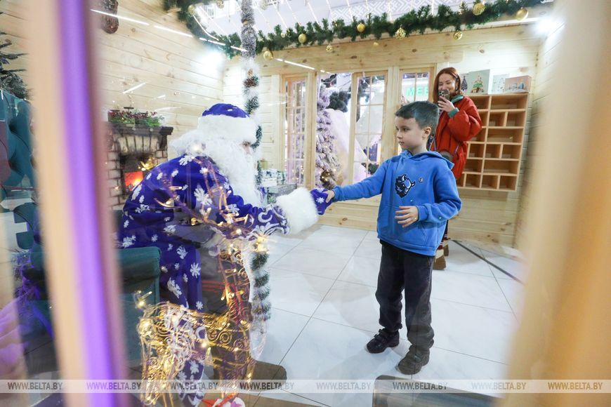 23 декабря, Минск /Корр. БЕЛТА/. Деревушка Деда Мороза встречает маленьких гостей в ТЦ "Першы нацыянальны гандлёвы дом". Это место, где дети смогут пообщаться с Дедом Морозом, спеть ему песенку