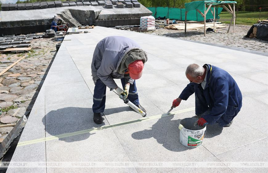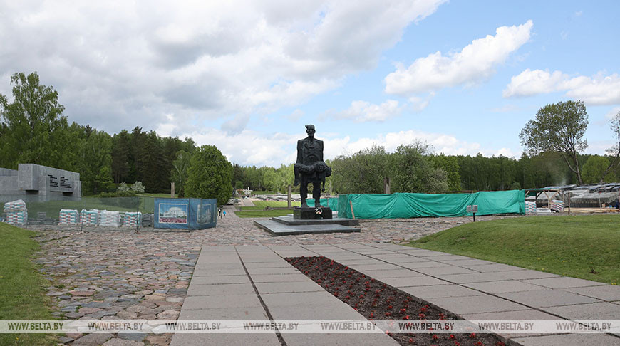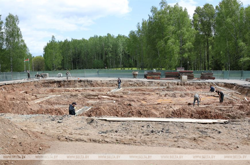 О ходе строительно-монтажных работ на территории мемориального комплекса "Хатынь" рассказал главный архитектор института "Белгоспроект" Виктор Скробот: "На данный момент активно ведутся работы над возведением здания нового музея, реконструкцией и капитальным ремонтом существующих знаний. Кроме того, мы работаем над возведением церкви, которая в прошлом находилась на территории деревни Хатынь. Проектные работы ведутся с листа. Это значит, что мы параллельно разрабатываем строительные чертежи и проектно-сметную документацию, а также ведем авторский надзор. До 1 октября все проектные работы мы планируем завершить".