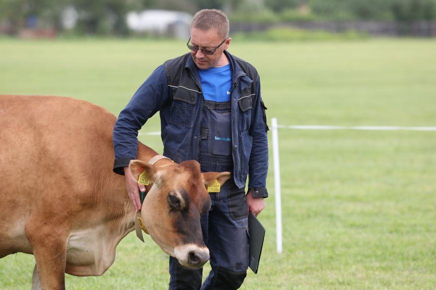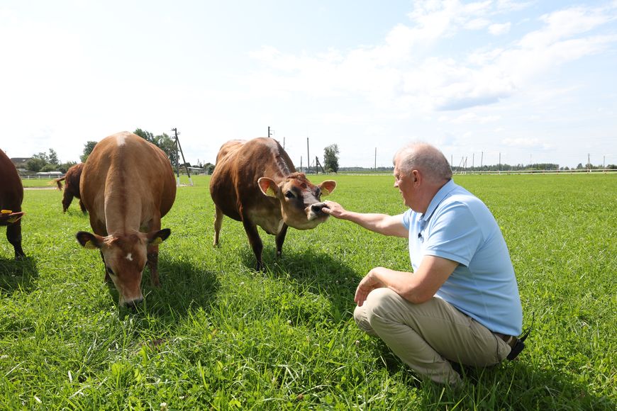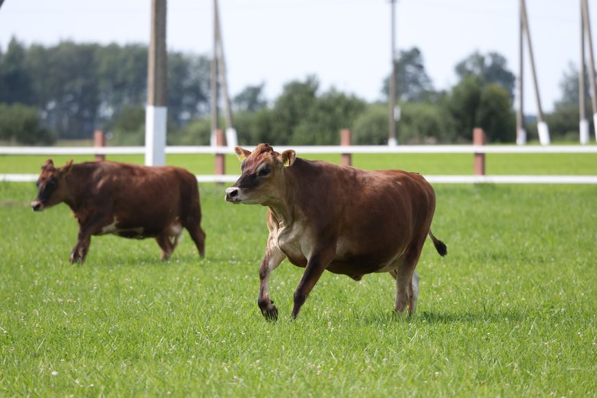 - Развиваем не только голштинскую и джерсейскую породы, но и редкие для Беларуси айширскую, симментальскую, есть хайлендская, ангусская и бельгийская голубая, - поясняет Иван Кысса. - Джерсейская хороша и тем, что общительная, спокойная, некрупная, да и конверция корма по превращению травы, сенажа или силоса в молоко даже лучше, чем у голштинской. Средняя жирность молока у нее доходит до 6 %, на пике лактации корова может давать 35 кг молока в день - меньше, чем голштинская, но у той и жирность ниже.