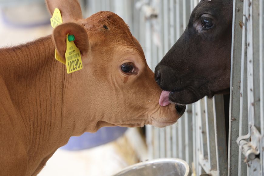 - Самый надежный партнер, с которым сотрудничаем с начала основания предприятия, - Беларусбанк, - продолжает руководитель. - Все-таки без какой-либо поддержки тяжелее двигаться вперед, а так мы можем воплощать какие-то замыслы, внедрять научные разработки. Отсюда и показатели: у нас 97 коров на 100 га - это самая высокая цифра в стране, 97 телят на 100 коров, что говорит о высоком уровне работы в части репродукции животных. Мы получаем самую высокую выручку на 1 гектар земли. Трудно поверить, но здесь применяется и суррогатное материнство. На предприятии подрастают телята-трансплантаты, появившиеся на свет таким способом… В целом все новорожденные помещаются на первые 60 дней своей жизни, как и положено, в профилакторий, своего рода детский сад. Каждый малыш содержится отдельно, получает соответствующее питание: молоко, воду, комбикорм. Когда подрастут, отправятся в общую группу.