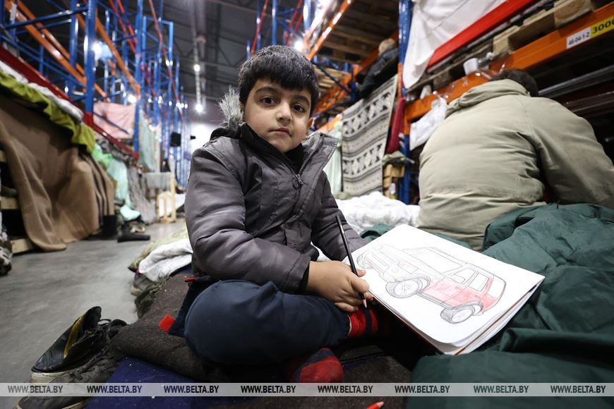 Сегодня 31-й день нахождения беженцев в пункте временного размещения в транспортно-логистическом центре на белорусско-польской границе. Все это время белорусы стараются обеспечить им комфортные условия проживания.