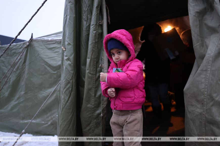 По его словам, сегодня в ТЛЦ день проходит спокойно, по расписанию у беженцев - посещение полевой бани женщинами и детьми. Белорусским Красным Крестом организована клоунотерапия для детей.