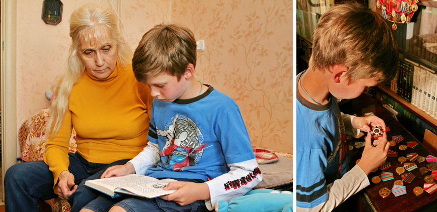 Светловолосый и кареглазый 11-летний внук Миша так и рвется во двор погонять мяч. Футболом он занимается с первого класса и мечтает стать игроком не хуже Александра Глеба. Но и в квартире с бабушкой и дедушкой ему тоже хорошо. Мальчишка самостоятельно добирается с другого конца города, чтобы навестить их. Подержать в руках дедов орден Франциска Скорины и его пионерский значок. Полистать книги - тут уж бабушка старается ненавязчиво обратить внимание на что-то интересное. Угоститься всякими вкусняшками.