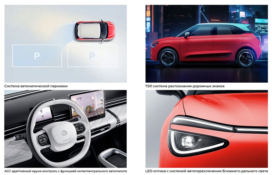 Премиальный уровень оснащения BOX уже включает 76 полезных и приятных в эксплуатации опций, которые прилагаются к стильной внешности электрокара и комфортабельному 5-местному салону. К тому же хэтчбек комплектуется европейскими разъемами медленной и быстрой зарядки CCS 2 Combo.