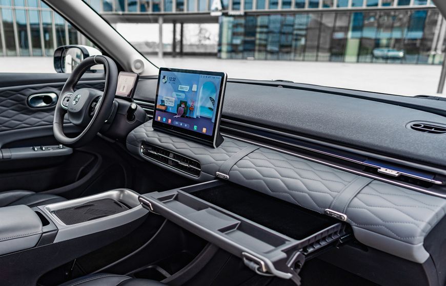 Завершающие штрихи дизайнерского электрокара - атмосферная подсветка и беспроводная зарядка - демонстрируют исключительное внимание к деталям, создавая пространство, которое не хочется покидать.
