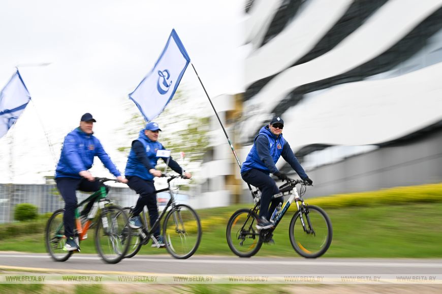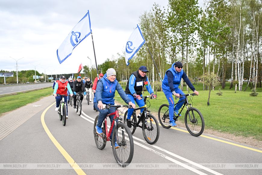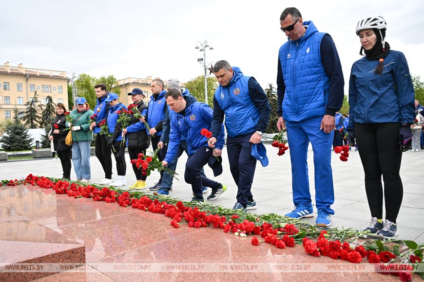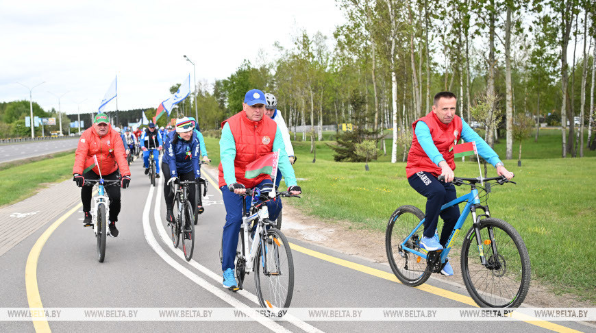 Белорусские атлеты и спортивные функционеры начали движение у аквапарка "Лебяжий" и финишировали на площади Победы. Участие в велопробеге приняли около 250 человек, в том числе вице-президент Национального олимпийского комитета Дмитрий Довгаленок и первый заместитель министра спорта и туризма Александр Дорохович.