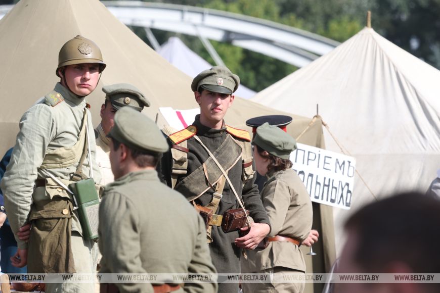Конечно, внимание уделили и временам Первой мировой войны. На зеленой зоне были разбиты полевая кухня, госпиталь, оружейный склад и многое другое.