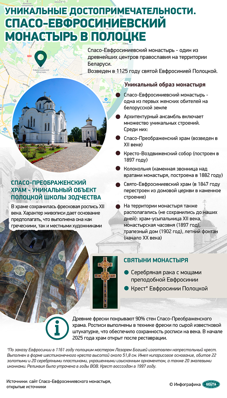 Конференцию 27-28 мая проводят Белорусская православная церковь, Национальная академия наук Беларуси, Институт истории НАН, Полоцкий государственный университет имени Евфросинии Полоцкой, Минская духовная академия, Полоцкий Спасо-Ефросиниевский женский монастырь. Она собрала в Полоцке более 70 исследователей из Беларуси и России. На полях конференции всесторонне обсуждается значение Полоцкого Спасо-Евфросиниевского женского монастыря и преподобной Евфросинии Полоцкой в контексте исторического, религиозного и культурного развития Беларуси и восточнославянских народов и земель. "Научный форум создаст условия для научной коммуникации и кооперации исследователей различных специализаций (богословов, историков, археологов, лингвистов, философов, социологов)", - отметили в НАН.-0-