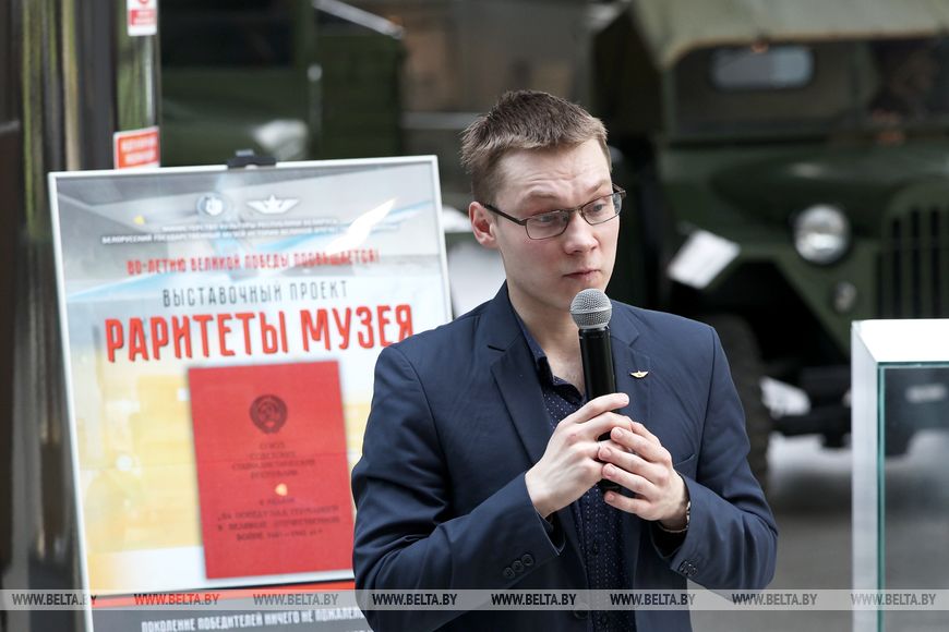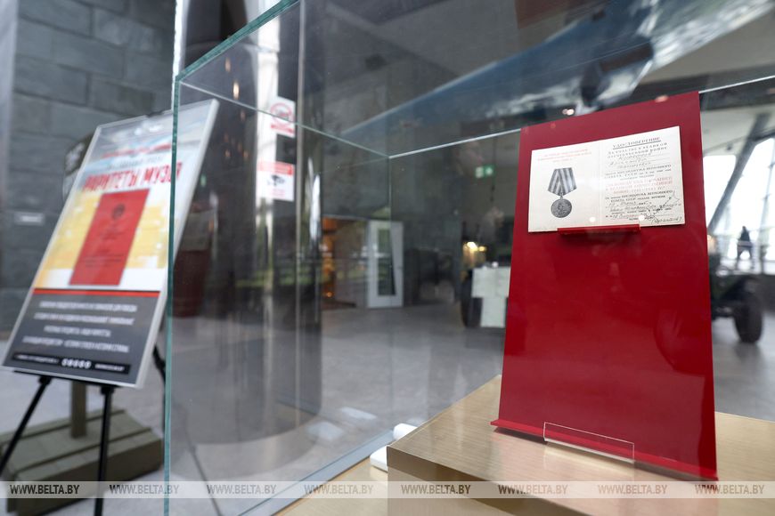 Временная экспозиция "Раритеты музея" ставит перед собой цель презентации уникального музейного предмета - реликвии войны, символа общего и личного подвига поколения победителей, спасших мир от фашизма. Ранее были представлены самодельный партизанский пистолет-пулемет ТМ-44, рукописный партизанский журнал бригады "Пламя" Минской области, иконка "Преподобная Евфросиния Полоцкая", медаль "Золотая Звезда" Героя Советского Союза Алексея Рокитянского.-0-