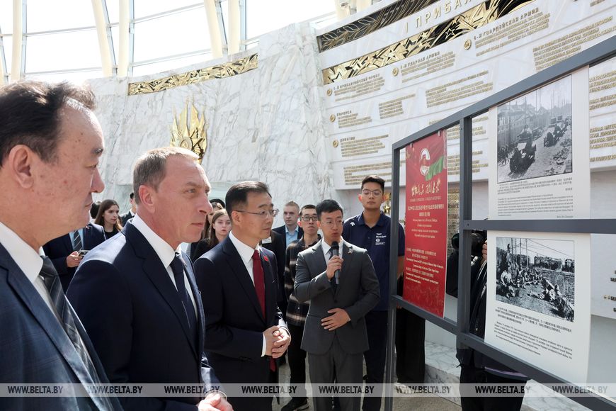 Посол подчеркнул: "Добро пожаловать на фотовыставку под названием "Помня о прошлом, созидать будущее", организованную посольством Китая в Беларуси совместно с агентством "Синьхуа". Благодарим правительство Беларуси, Белорусский государственный музей истории Великой Отечественной войны за огромную поддержку в проведении данного мероприятия. Ровно 80 лет назад, 15 августа 1945 года, японские захватчики объявили о безоговорочной капитуляции"."Китайский народ, пройдя через 14 лет тяжелой и героической борьбы, одержал великую победу в войне сопротивления японским захватчикам", - обратил внимание глава дипломатической миссии.