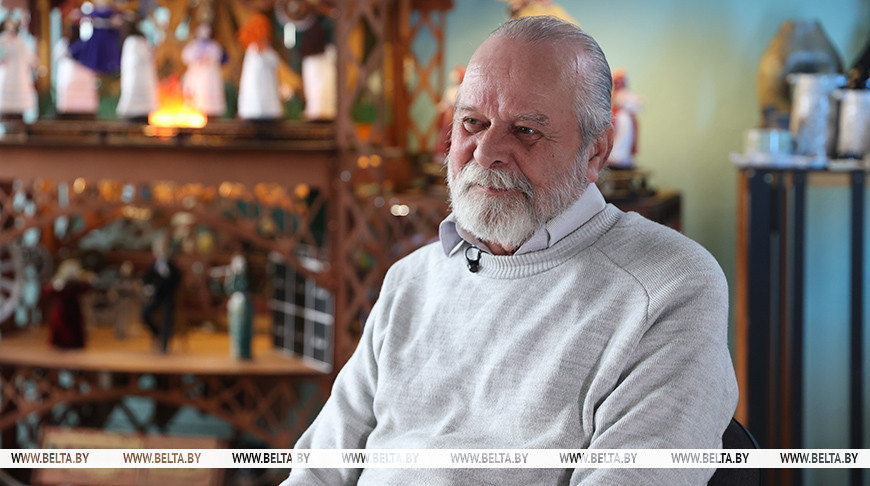 - Это самое необычное, что я делал. Идея возникла давно, но примерно пять лет понадобилось, чтобы продумать конструкцию кинетического театра, разработать чертежи и сделать расчеты. Довольно сложно было определиться с сюжетом, потому что хотел в него вписать ряд белорусских праздников - Каляды, Купалле, Дажынкi. В какой-то момент понял, что идея настолько масштабная, что без помощи не обойдусь. Мастерицы из нашего центра подключились к работе, помогли с оформлением и созданием кукол, - рассказывает Андрей Мартынюк.