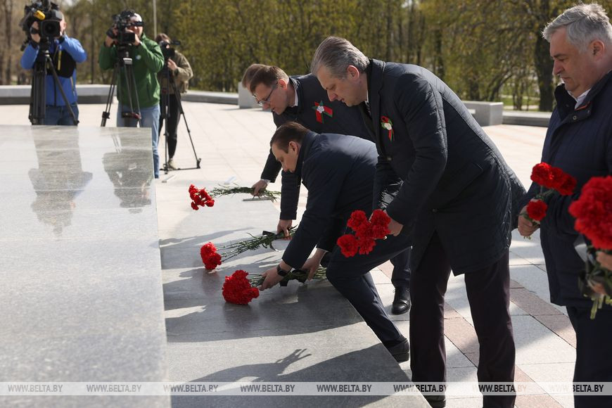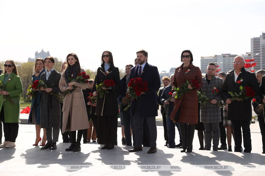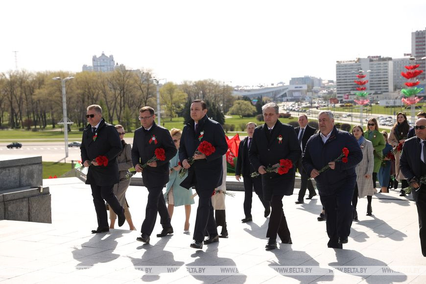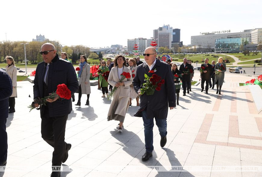 Министр информации Владимир Перцов, руководители и представители республиканских СМИ сегодня возложили цветы к стеле "Минск - город-герой".