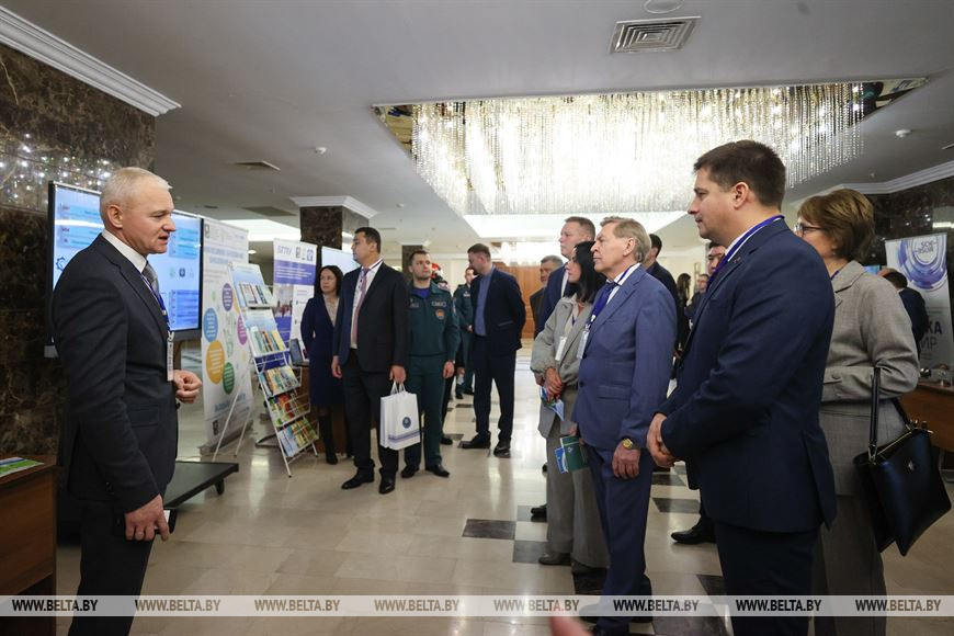 Перед началом мероприятия гостям из зарубежья провели экскурсию по выставке достижений белорусского образования, ознакомили с работой ведущих вузов страны, рассказали о перспективных специальностях и наработках.