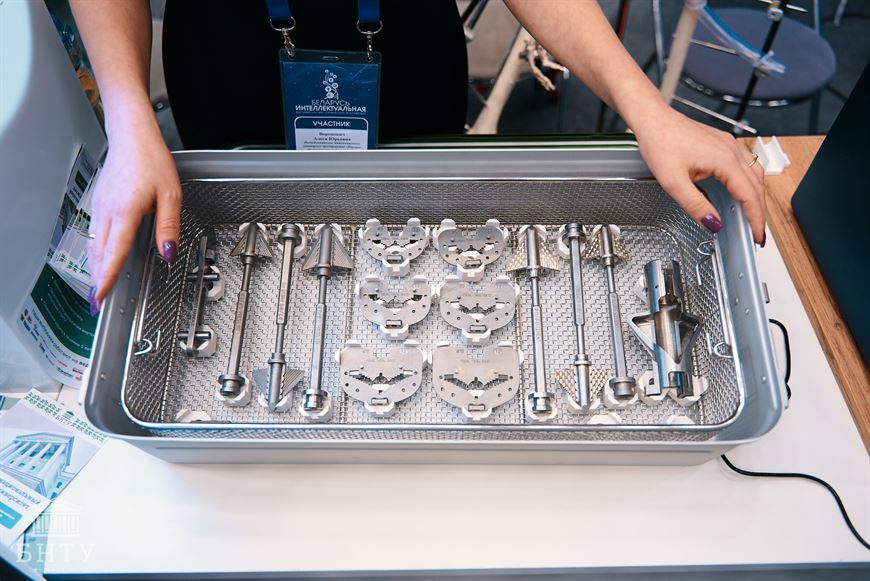 После продвижения в разработке, производстве, реализации изделий для травматологии специалисты научно-технологического парка БНТУ занялись ортопедией. "Разработали собственный эндопротез коленного сустава и инструментарий для его установки. Прошли все технические испытания, санитарно-гигиенические испытания, доклинические испытания, и в ноябре прошлого года мы успешно прошли первые клинические испытания, установили эндопротез в человека. Пациентка уже прошла реабилитацию. Сейчас мы получаем регистрационное удостоверение и уже в этом году планируем производить для белорусских потребителей эндопротезы в количестве более тысячи штук в год", - подчеркнул Павел Лущик.
