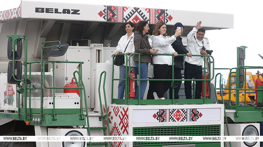 Гостям рассказали, что предприятие является крупнейшим мировым производителем карьерных самосвалов и транспортного оборудования для горнодобывающей и строительной промышленности. География поставок техники включает более 80 стран.