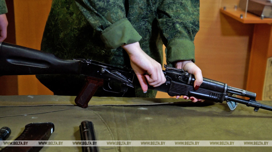 Разбирать и собирать автомат на время - кажется, самое известное упражнение солдат-срочников после строевого шага. Пока все делает человек умелый, кажется, что это очень просто. А на самом деле? Корреспондент БЕЛТА Александра Стригун решила проверить, сколько времени на выполнение норматива потратит она.