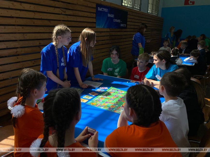 Интересной площадкой этого года стал турнир настольных и дворовых игр "Мы играем!". Как рассказала заместитель председателя Центрального совета ОО "БРПО" Юлия Шинкаренко, сам турнир включает четыре блока. "У детей до 11-12 лет игра - основной вид деятельности. Конечно, дети любят играть, и самое важное - правильное содержание игры. Один из блоков - интерактивная настольная игра "Октябрята - страна юных патриотов". Эта игра была изготовлена благодаря гранту Президента Республики Беларусь. По правилам, по карточкам с заданиями ребята должны пройти определенный маршрут. Вопросы в карточках разнообразны - история пионерского движения, история Великой Отечественной войны и история нашей страны", - рассказала она.