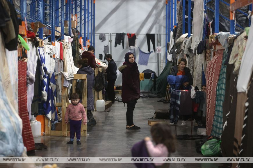 22 Гродно, Минск /Корр. БЕЛТА/. Около 700 человек, среди которых немало детей и женщин, продолжают находиться в пункте размещения в транспортно-логистическом центре "Брузги" неподалеку от белорусско-польской границы. Большинство из них - выходцы из Ирака, в основном курды.