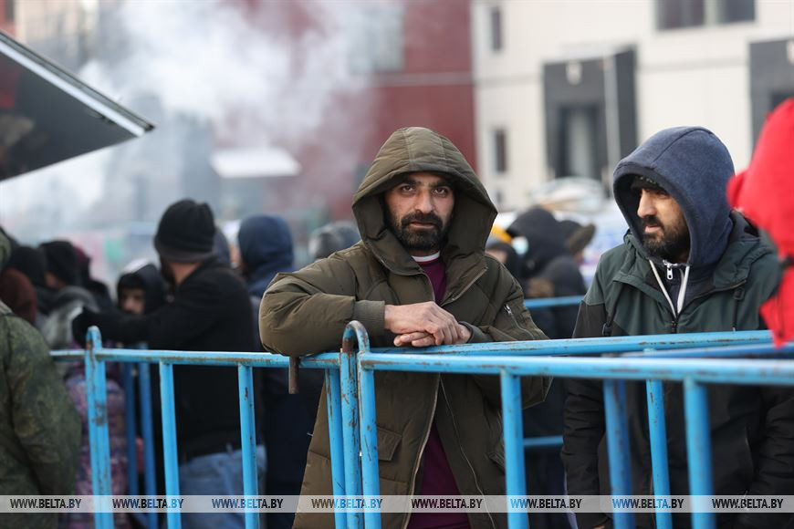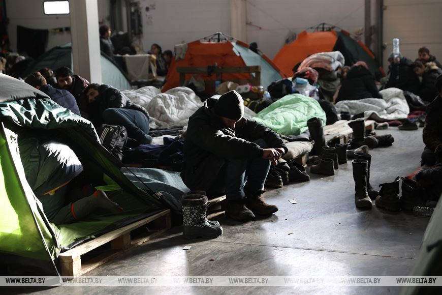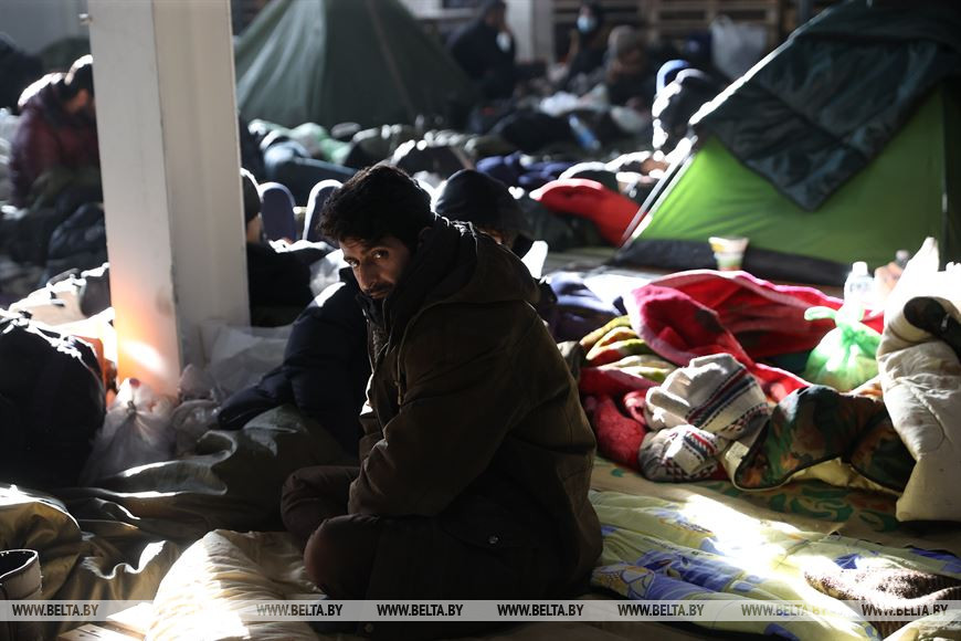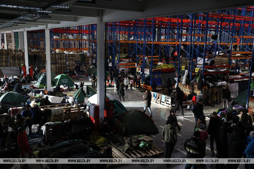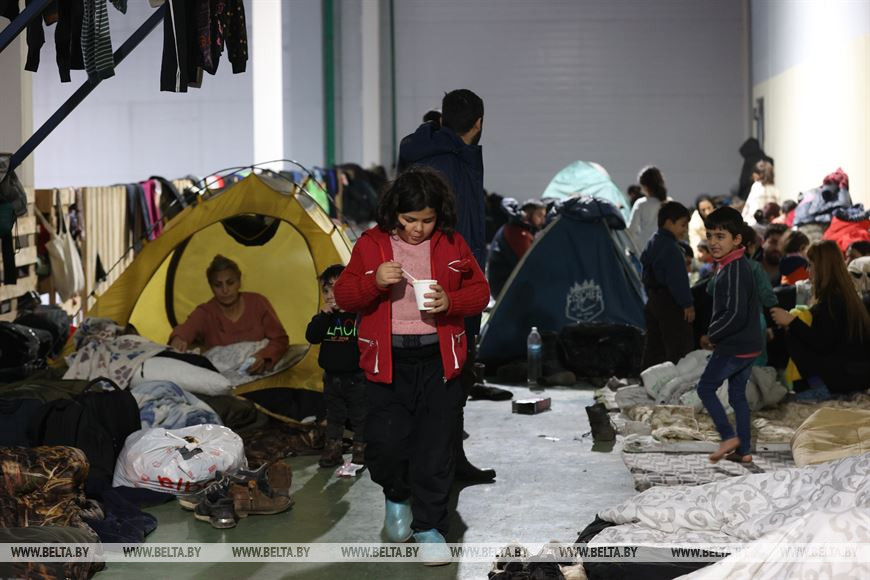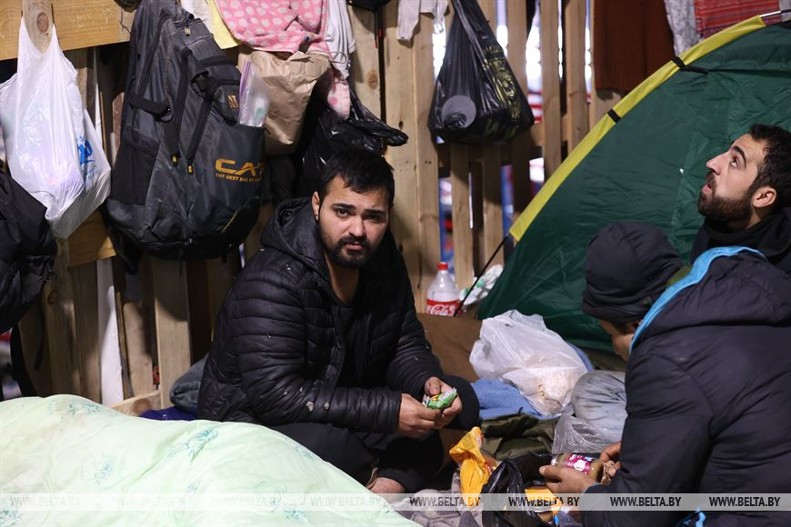 30 ноября, Гродненская область /Корр. БЕЛТА/. 23-й день пытающиеся попасть в Евросоюз беженцы находятся в ТЛЦ у пункта пропуска "Брузни" на белорусско-польской границе.